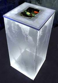 als Sitz und als Tisch 2005 beginnt unsere erfolgreiche Eismöbel-Kollektion mit der Erfindung dieser handgemachten Acryl Eiswürfesl mit einer seit Jahren entwickelten Struktur- Technik, die alle Oberflächen frostig erscheinen lassen, siehe auch >EisStrukturen Zeitgleich enstand auch unsere Webseite mit der Eigenmarke acryleis die mittlerweile eine geschützte europäische Wortmarke ist. |